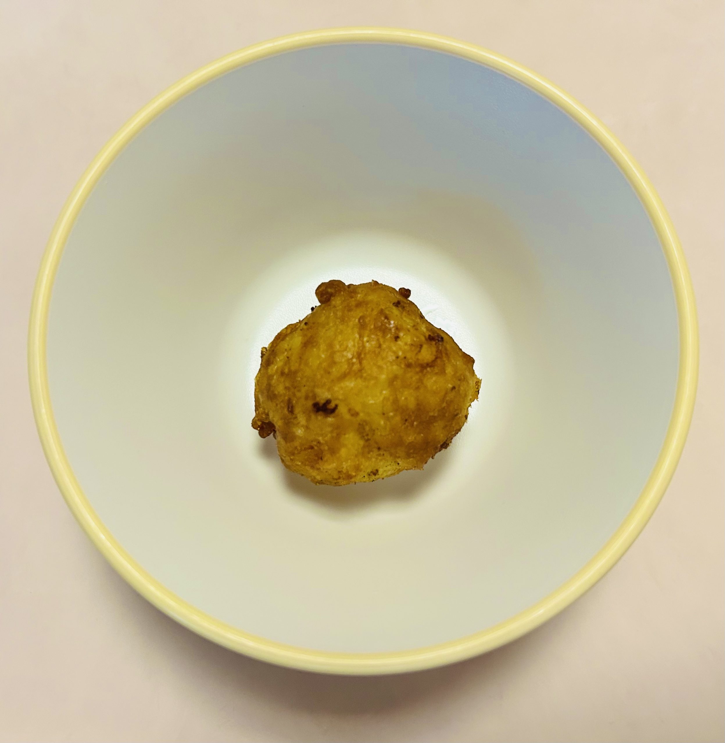 ②⭐︎の食材を混ぜて衣を作り、①をくぐらせ180℃に設定した揚油できつね色になるまで揚げる。